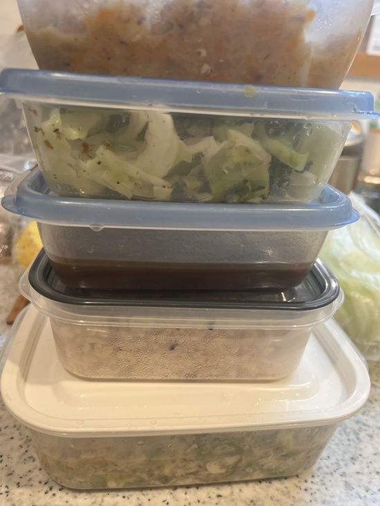 お水代わりに豆乳を使ってます。お豆腐系がメインのタンパク源。お魚も使います。