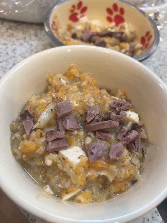 更にトッピングでお豆腐と鹿肉(圧力鍋で煮たもの)少々。