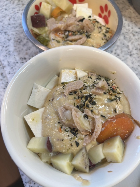 結構トロトロに煮てるんですが、2匹とも少し💩が緩めだったので