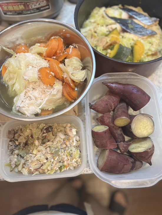 さすがに全部ドロドロだと、ちょっと物足りないようなので、人参とお芋くらい多少歯ごたえ残しておきます。