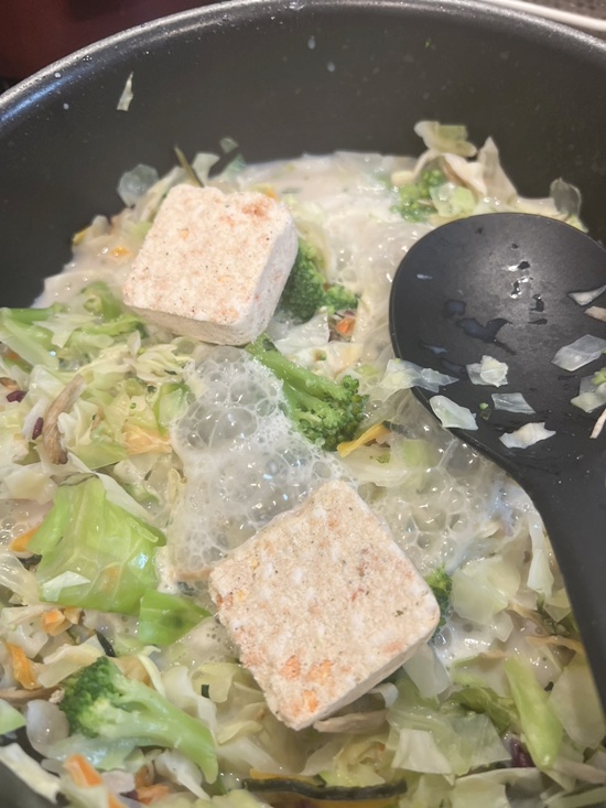 ある程度お湯で煮込んだ仕上げに豆乳を使います。
