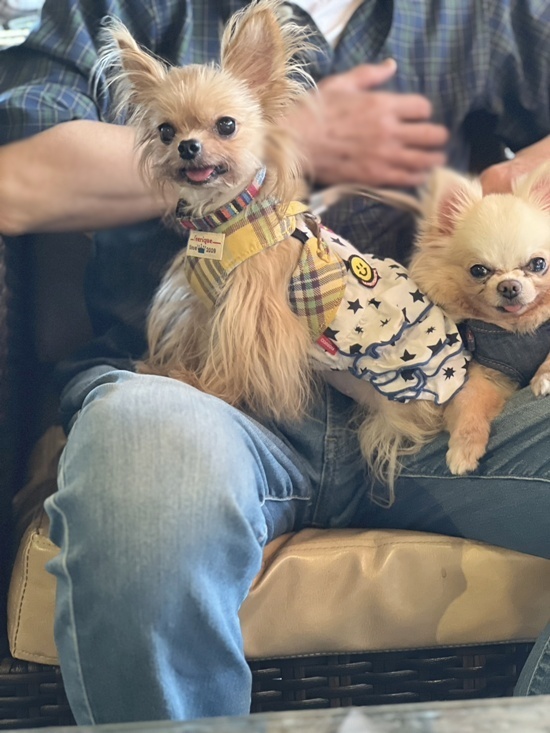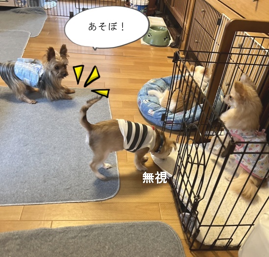 2匹とも、まだ、犬と上手く付き合うということが下手なようです。