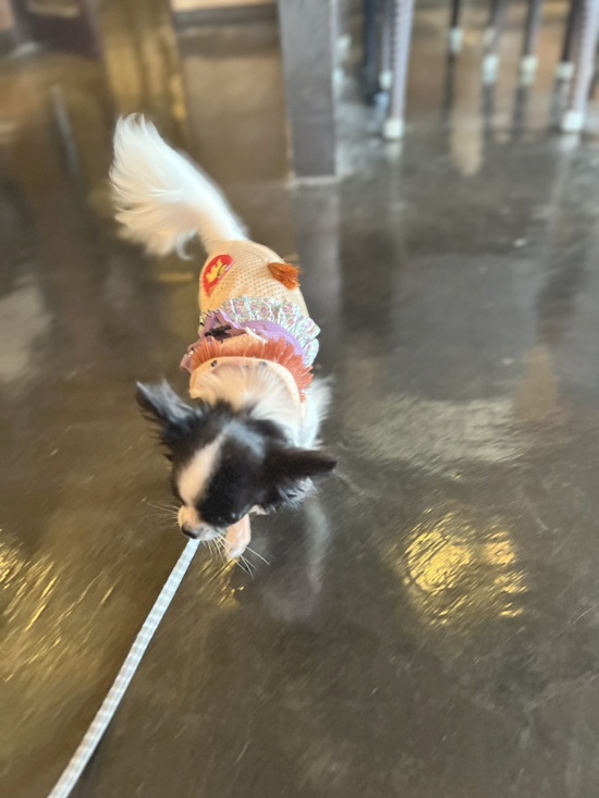 まだ、少しビビってます。ヨーキーのリゲルの方が人懐こいです。