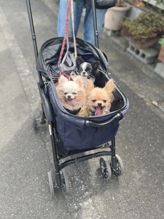 そして帰りは又歩く気が全く無い3匹をカートに載せて帰りました。