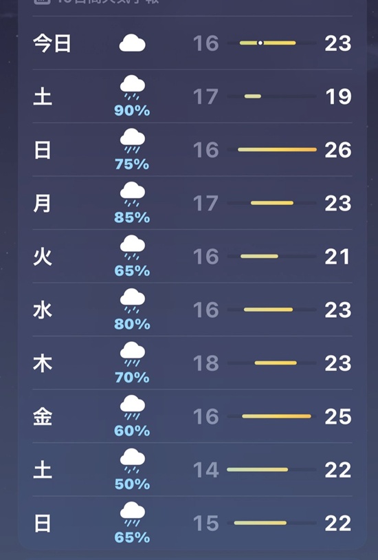 明日はもう少し頑張って・・・と思って天気予報を見たら、明日からずっと雨予報。