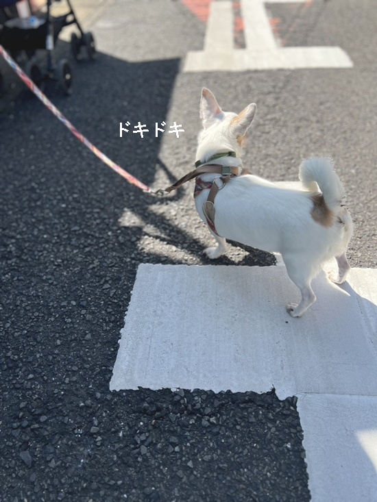 あまりお散歩は得意ではないようで、最初はドキドキ動かない。