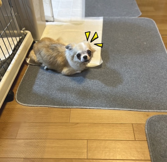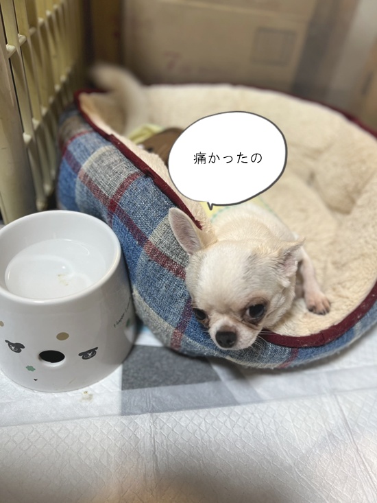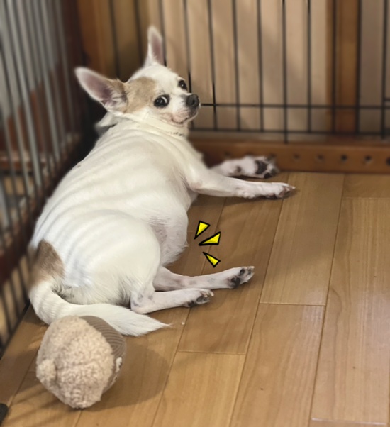 流石に今日は元気がないですが、側に行くと尻尾を振ってくれます。