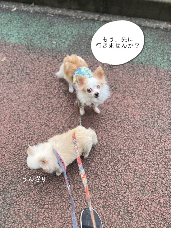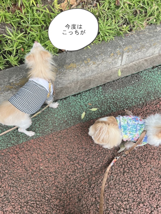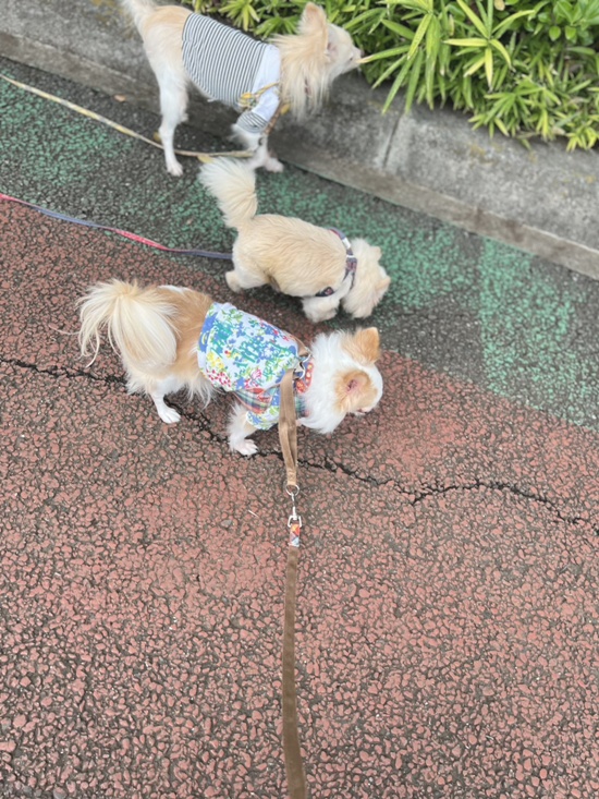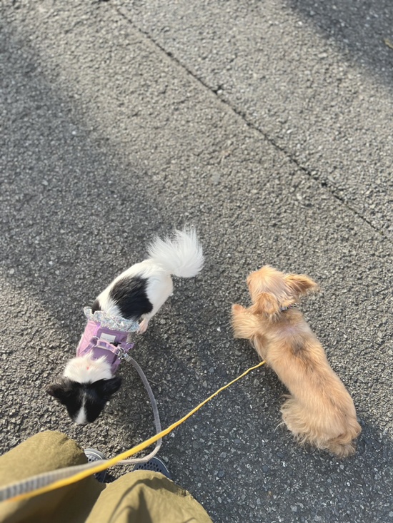 もう、この2匹を50m歩かせるのに一苦労。