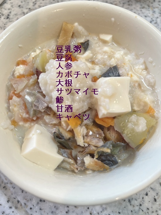豆乳粥は本葛でとろみをつけてます。本葛も胃腸を保護する働きがありますので。