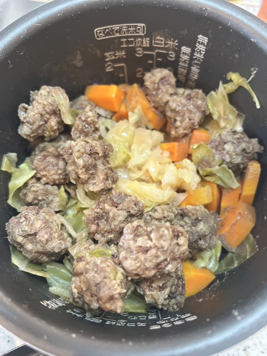 ご飯は通常よりお水を多めに炊いてます。そこに豆乳を入れてます。