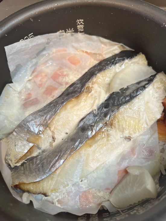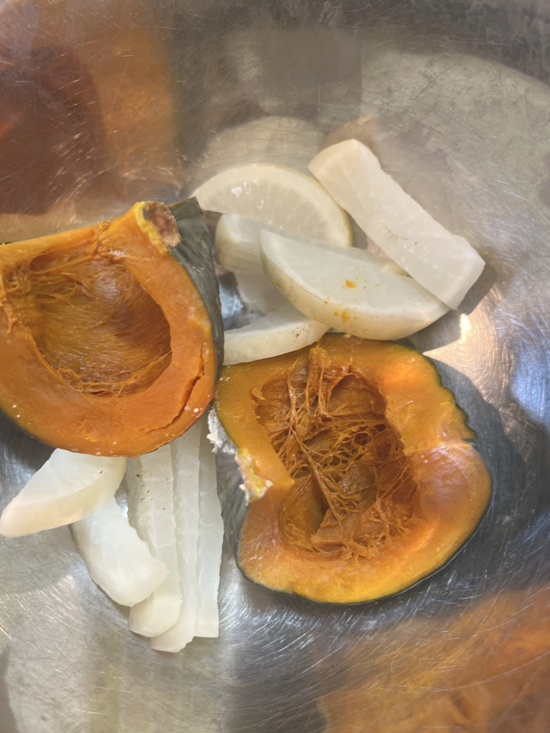 その上に大根とカボチャ。カボチャを今日のご飯に使い忘れましたが。