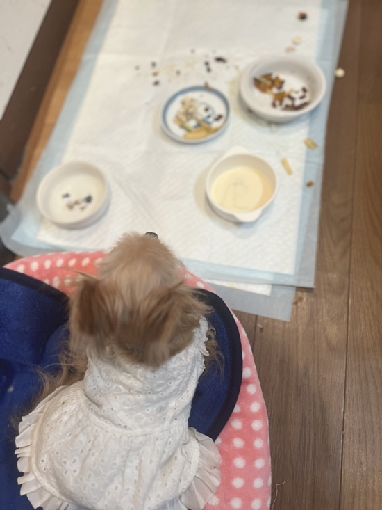 食欲がないので、色々、次から次に出してますが、側にも行かないことが多く、たまに、行って少しだけ食べて、散らかして、もういらない・・という状態。