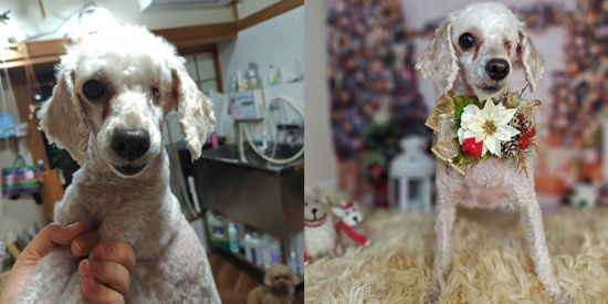ちょっとボロボロだったりしますが、後にトリマーさんがきれいにしてくれてます。