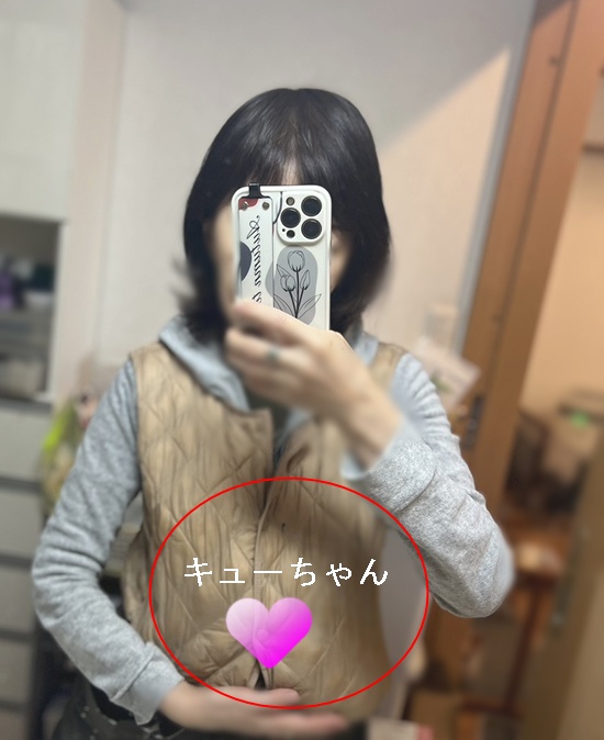 仕方がないので、ずっと服の中に入れて妊婦のように過ごしています。