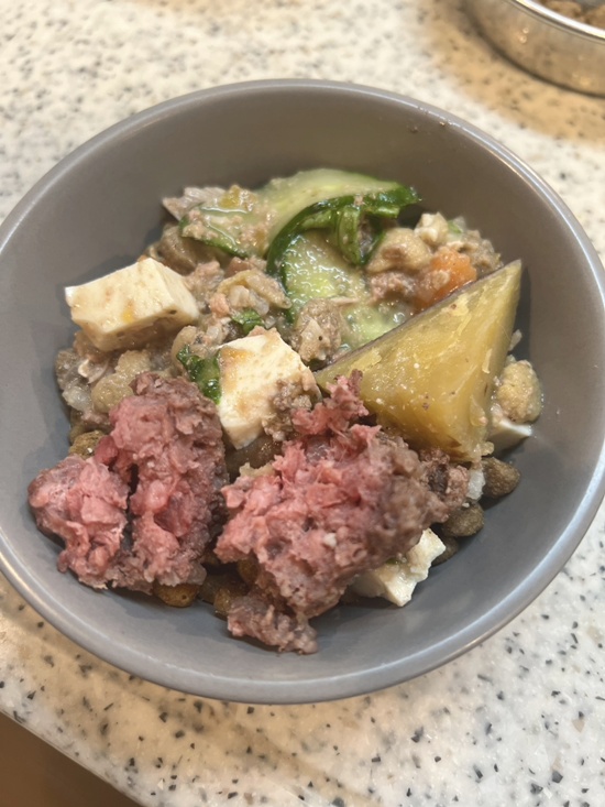 ジビエ、お豆腐、きゅうり、人参、、レバー、ドライフード等。