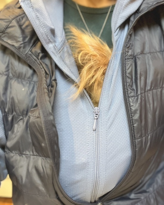 ずっと妊婦のように服の中に入れて歩いていたんですが