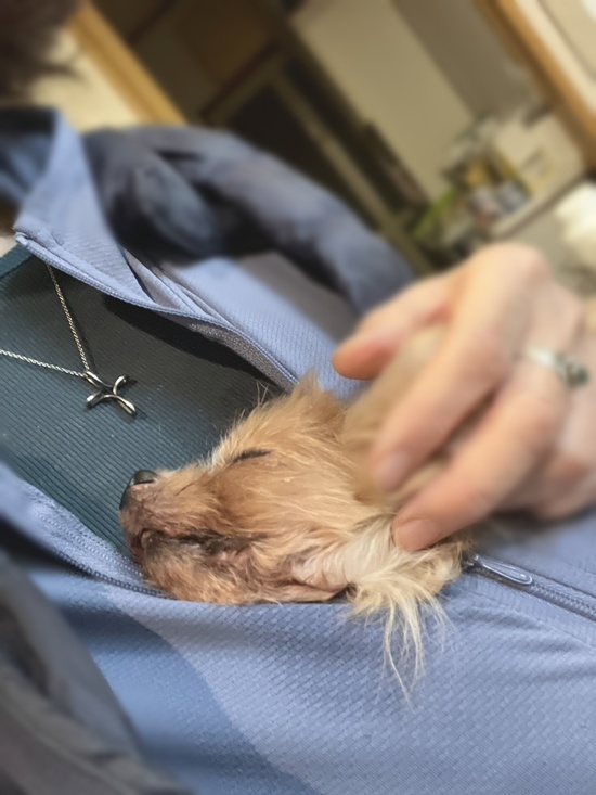 数日前までのように、自分の意思で「入れて、抱っこして」というパワーは感じませんが、ここに入っていればキューちゃんも安心しているのを感じます。