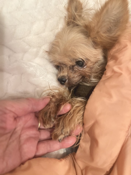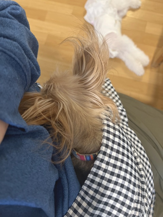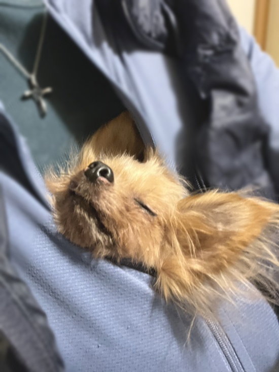 キューちゃんはずっとショコママの服の中に居たので、旅だった時もショコママのお腹で眠ったまま逝きました。