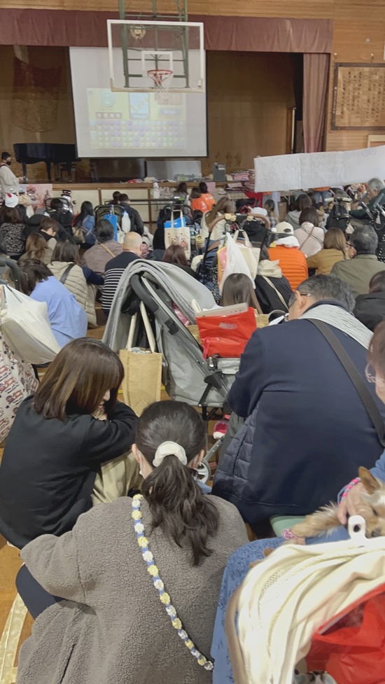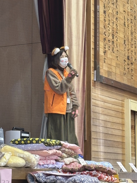 普段はマルシェなどで結構なお値段のハンドメイドのお洋服やベッドなどの他、新品のお洋服、高級雑貨、シャンプーなど盛りだくさん。最初に上がった方から好きなものを取っていただきますが、最終的には全員に当たるように十分な御品を用意しました。