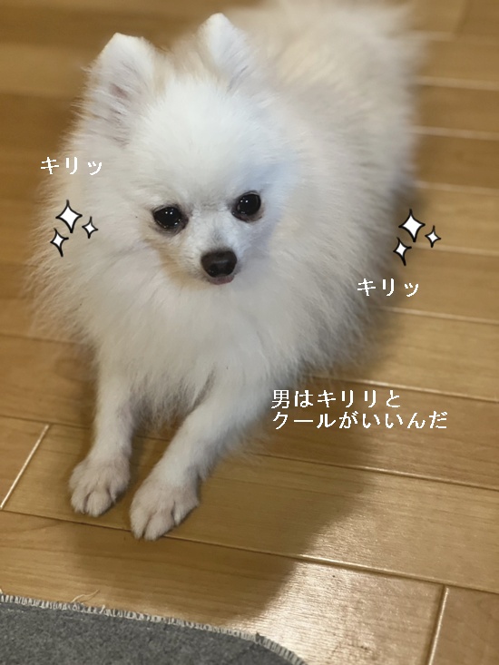 白ポメのアルタイル君。人にも犬にもちょっとクールなタイプ。