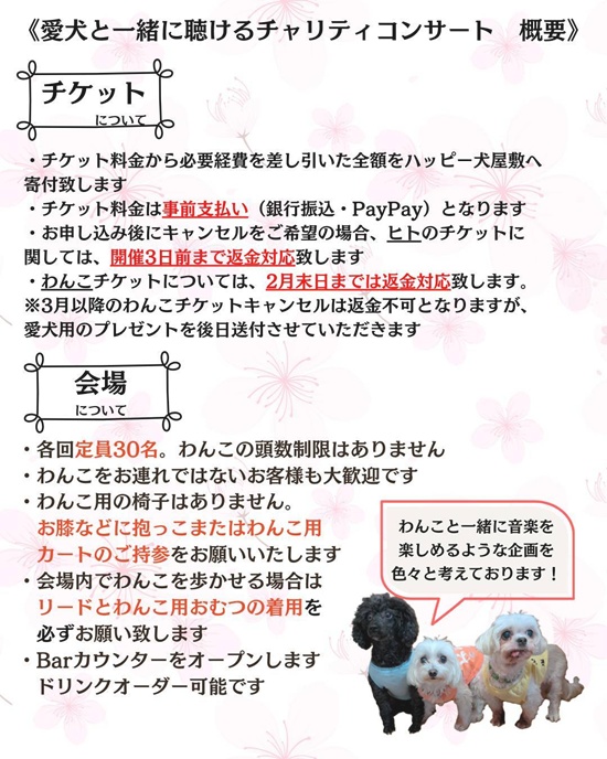 音楽を楽しんで、それがハッピー犬屋敷への支援にもなる・・というプログラムです。