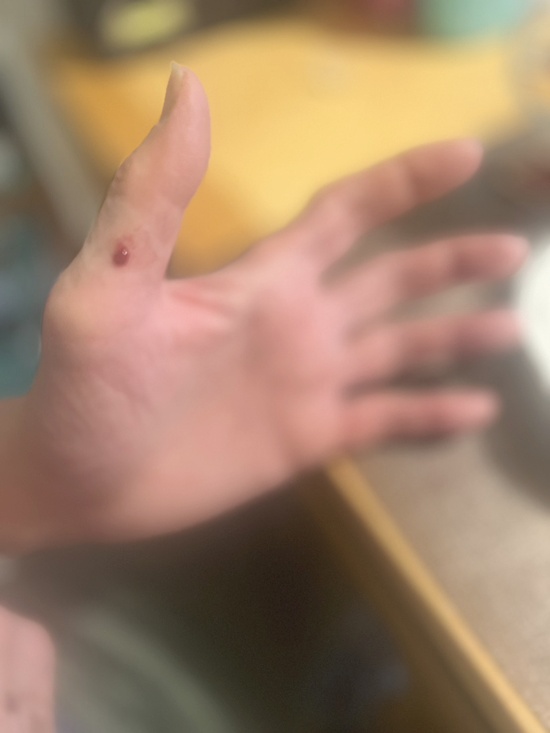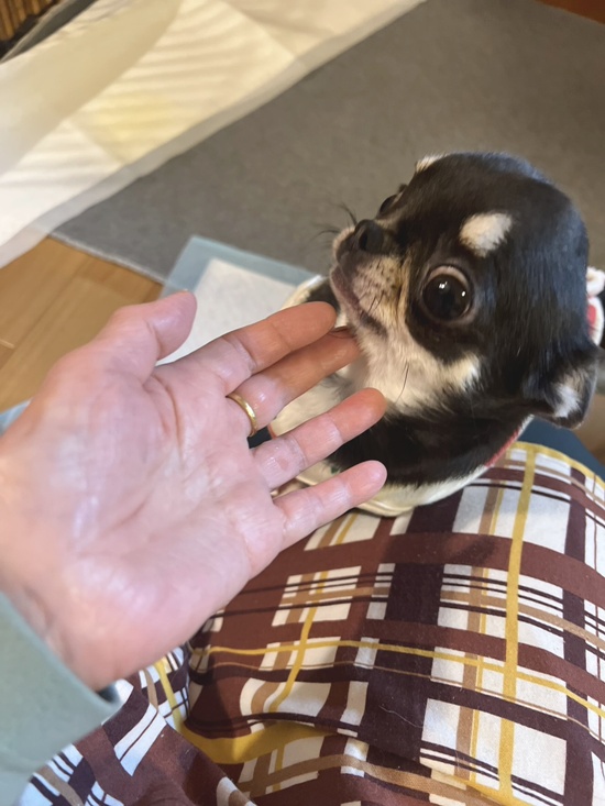 そして、今朝のおっちゃん、わんこに手を噛まれたと大騒ぎ。
