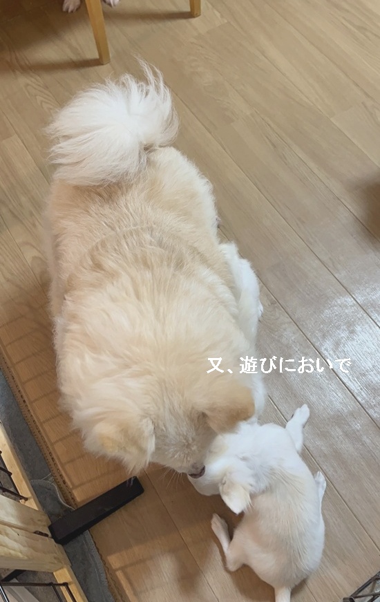 仔犬も遊んでくれるしょうちゃんを分かっているので、フリーにすると真っ先にめがけていきます。