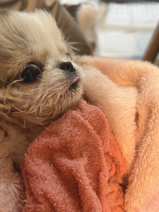 冷たいと激怒ですが、今日は気持ちよかったのか大人しくしてます。