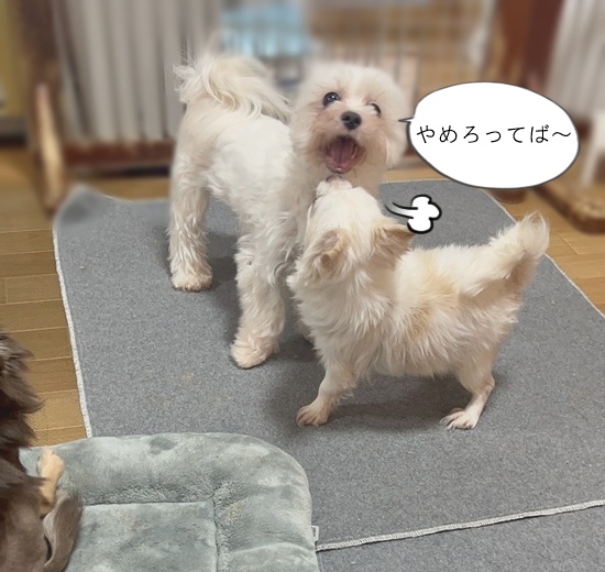 気難しいチャービルジィちゃまにしつこく絡んで絡んで・・遊んでもらいたいようです。