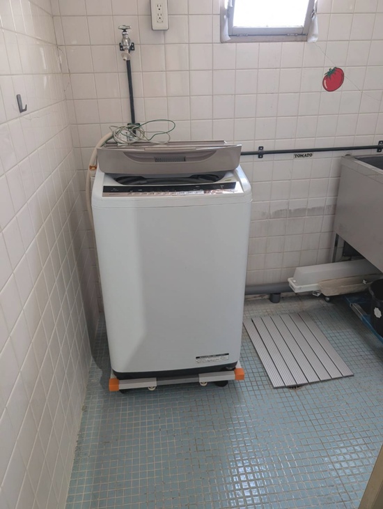 そして、先日の日曜日、この間力持ちママさんが運び入れて下さった冷蔵庫と洗濯機を、男性スタッフ数名で2階にあげて下さいました。