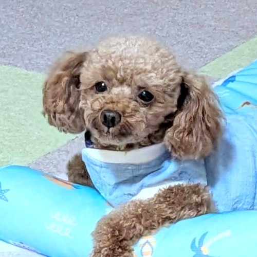 痛みは無いようなので、お散歩で筋力を付け運動療法で対処しています。