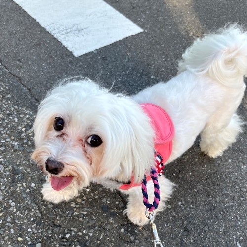 車やバイクが通ると立ち止まりますが、クンクンしながら楽しそうに歩きます。