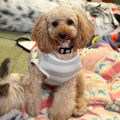遊び大好きでおもちゃで遊んだり、他のわんことも元気いっぱいに遊びます。