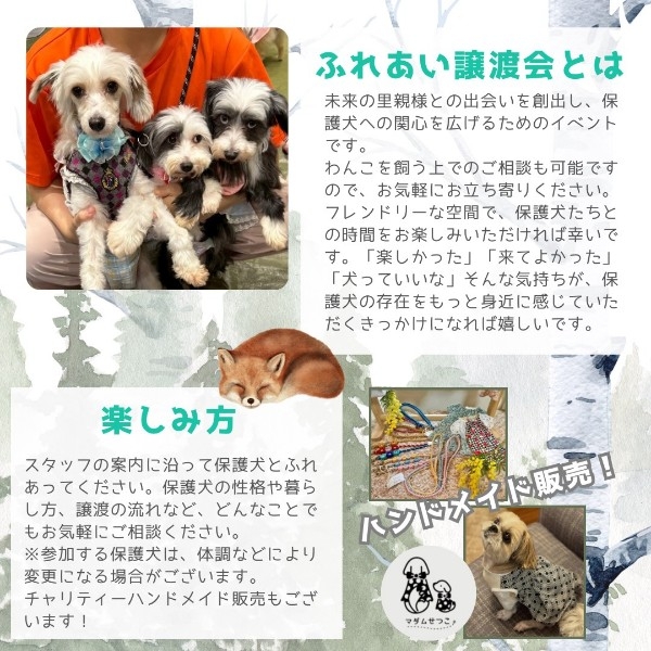 沢山の方のご来場を、スタッフ一同と可愛い保護わんこ達と一緒にお待ちしています!