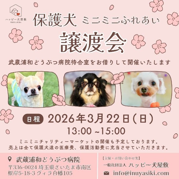 埼玉県さいたま市の武蔵浦和どうぶつ病院様にて、ふれあい譲渡会を開催させていただくことになりました。
