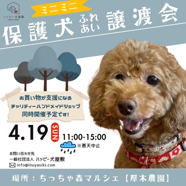神奈川県厚木市の厚木農園様にて、ふれあい譲渡会開催とチャリティーハンドメイドショップを出店させていただくことになりました。