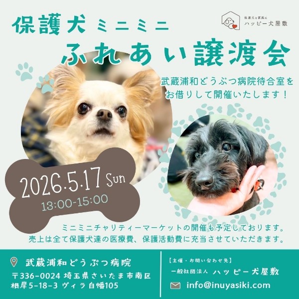 埼玉県さいたま市の武蔵浦和どうぶつ病院様にて、ふれあい譲渡会を開催させていただくことになりました。